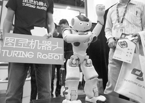 4月28日,觀眾在2015全球移動互聯(lián)網(wǎng)大會上觀看一款語音識別智能機(jī)器人。當(dāng)日,為期3天的2015全球移動互聯(lián)網(wǎng)大會在北京開幕,大會匯聚了來自全球移動互聯(lián)網(wǎng)公司的創(chuàng)新領(lǐng)袖,探討行業(yè)熱點(diǎn),分享全球移動互聯(lián)網(wǎng)領(lǐng)域的重大機(jī)遇與變革。