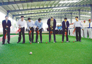 本報訊 (記者 李鳳霞 宋馨 沈湛 文/圖) 5月5日上午,“中國體育彩票杯”河南省第十二屆老年人體育健身大會門球交流活動在周口體育中心門球館舉行。省老年體協(xié)主席馬憲章,省體育局局長張文深,市委書記、市人大常委會主任徐光,市長劉繼標,正市長級干部李紹彬,市人大常委會副主任、市老年體協(xié)主席游保峰,省老年體協(xié)副主席王瑋等領導共同為活動開球(如圖)。