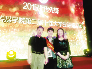 本報(bào)訊 (記者 張猛 文/圖)“翩翩少年逐夢(mèng)而來(lái),帶著‘一日看盡長(zhǎng)安花’的豪氣勇敢面對(duì)所有困難。無(wú)畏逆境,玉汝于成,你用畫(huà)筆描繪下你的熱情與希望,從來(lái)不曾停下創(chuàng)作的執(zhí)著腳步……”這是5月4日舉辦的浙江傳媒學(xué)院“第二屆十佳大學(xué)生”頒獎(jiǎng)典禮上,主持人現(xiàn)場(chǎng)宣讀的該院動(dòng)畫(huà)學(xué)院學(xué)子朱鑫宇當(dāng)選“十佳大學(xué)生”的頒獎(jiǎng)詞。之前,經(jīng)本報(bào)、杭州日?qǐng)?bào)及網(wǎng)絡(luò)等媒體報(bào)道,這名即將走出大學(xué)校門的動(dòng)漫專業(yè)才子備受社會(huì)各界關(guān)注,其原創(chuàng)漫畫(huà)日前登上央視一套“新聞聯(lián)播”等欄目。