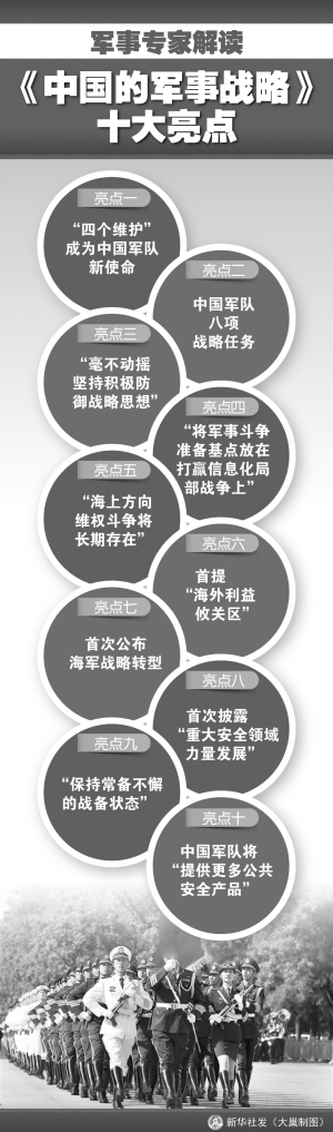這是自1998年以來(lái)中國(guó)政府發(fā)表的第九部國(guó)防白皮書,也是首部專門闡述中國(guó)軍事戰(zhàn)略的白皮書。