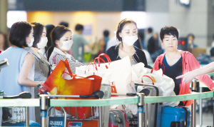 韓國又確診中東呼吸綜合征患者 5月30日,在韓國仁川國際機(jī)場,佩戴口罩的乘客排隊(duì)等候辦理登機(jī)手續(xù)。韓國保健福祉部30日例行通報(bào)說,當(dāng)日新確診了1例中東呼吸綜合征患者。至此,韓國國內(nèi)確診的患者已增至12人,另有一名韓國患者在中國被確診。新華社發(fā)