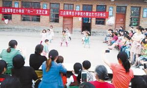 左圖 兒童節(jié)前夕,項(xiàng)城市積極組織小學(xué)、幼兒園開(kāi)展慶“六一”活動(dòng),讓小朋友享受更多的歡樂(lè)和溫暖。圖為三店鎮(zhèn)李莊小學(xué)的孩子正在表演節(jié)目。(張永久 攝)