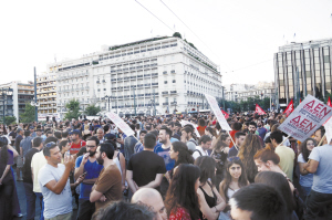 7月13日,民眾在希臘雅典參加集會,抗議財政緊縮措施。新華社發(fā)