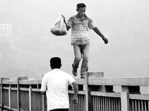 本報(bào)綜合消息 一位年過(guò)半百的老伯,竟然踩在大橋的欄桿上,閑庭信步(下圖)……這并非是武俠片中的片段,而是9月3日7時(shí),掌上拍客張先生在重慶石板坡長(zhǎng)江大橋拍攝到的一幕,張先生說(shuō),老伯在欄桿上行走的速度不輸給常人在大道上步行的速度。同時(shí)在網(wǎng)上,也有很多網(wǎng)友稱(chēng)目擊到了這一幕,并將當(dāng)時(shí)的所見(jiàn)所聞發(fā)在了網(wǎng)上,很多網(wǎng)友都稱(chēng)老伯為“輕功哥”。