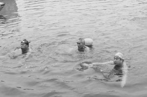 伸伸腰,扭扭腿……下水前,大家都要活動筋骨,避免發(fā)生意外。根據(jù)分組,大家按照次序來到河邊,聽到口令后,一個個魚躍河中。14歲的張毅來自許昌代表隊,賽后他激動地對記者說:“我很久之前就開始接觸游泳了,但是冬泳剛剛練習(xí)了3年,參加這樣的比賽很開心?!庇浾卟稍L發(fā)現(xiàn),冬泳愛好者比賽結(jié)束后很少關(guān)心自己的成績,他們說得最多的是“爽”。一位冬泳愛好者告訴記者,比賽成績不重要,重要的是這項運動能培養(yǎng)人的意志力以及使人保持開朗樂觀的生活態(tài)度,這才是他所追求的。